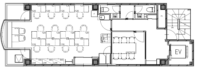E V :1基、天井高:―㎜、床仕様:OAフロア、空調:個別空調、トイレ:専用 男女別 洋式
