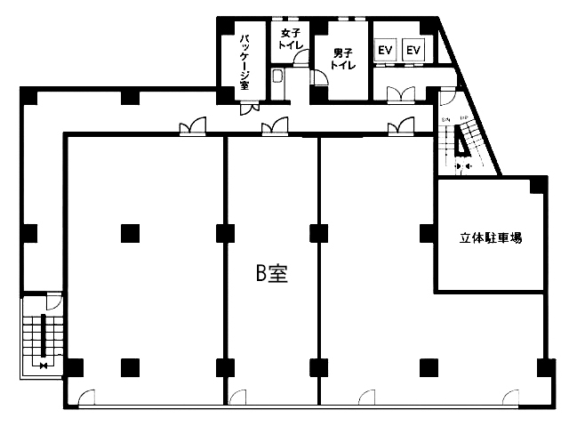 E V :2基(13人乗)、天井高:―㎜、床仕様:OAフロア、空調:個別空調、トイレ:共用 男女別 洋式