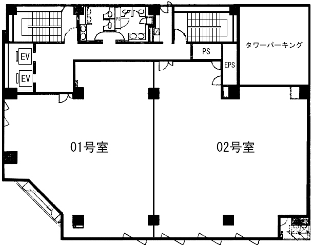 E V :2基、天井高:2500㎜、床仕様:OAフロア(H=50mm)、空調:個別空調、トイレ: 男女別