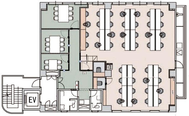 E V :1基、天井高:3,050mm(梁下有効2,525mm)㎜、床仕様:OAフロア(H=50mm、有効=40mm)、空調:個別空調、トイレ:専用 男女別