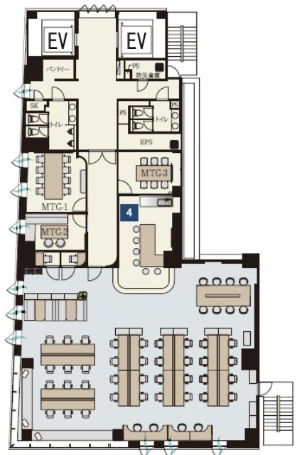 E V :2基(15人乗・17人乗)、天井高:2700㎜、床仕様:OAフロア(H=40mm)、空調:個別空調、トイレ:専用 男女別 洋式