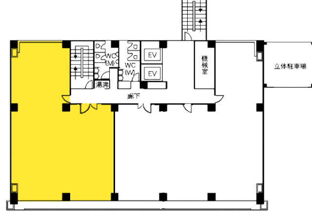 E V :2基(17人乗)、天井高:2600㎜、床仕様:Pタイル、空調:セントラル・個別併用、トイレ:共用 男女別 洋式