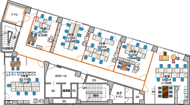 E V :1基(11人乗)、天井高:2400㎜、床仕様:OAフロア(H=50mm)、空調:個別空調、トイレ:共用 男女別 洋式