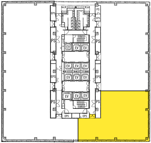E V :19基、天井高:2700㎜、床仕様:OAフロア(H=100mm)、空調:個別空調、トイレ:共用 男女別 洋式