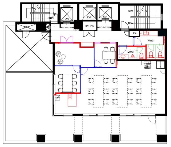 E V :3基(9人乗)、天井高:―㎜、床仕様:OAフロア、空調:個別空調、トイレ:専用 男女別 洋式