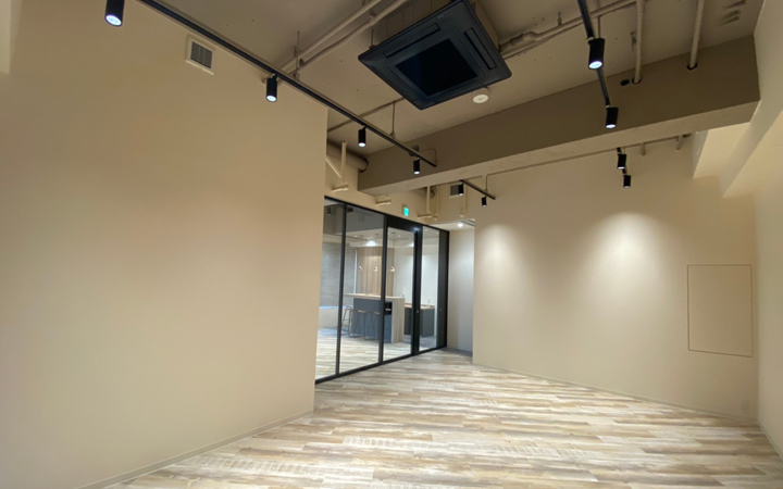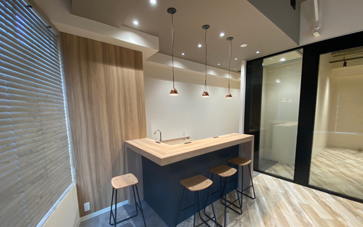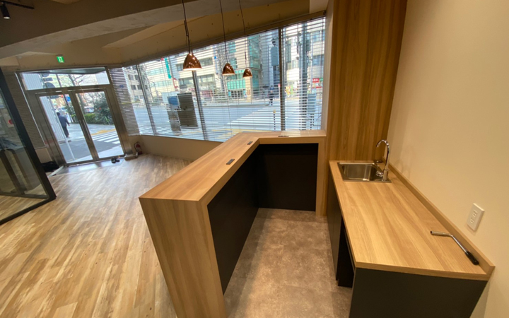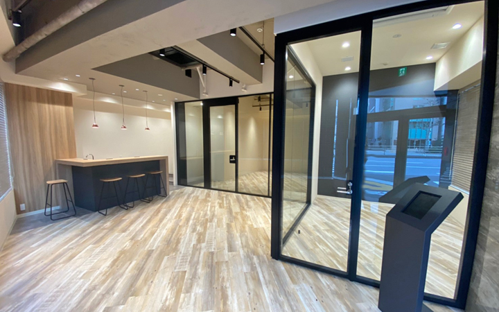 この坪数帯のセットアップオフィスでは珍しい1階区画のご紹介です!しかも今回は大通りに面した区画。ショールームや、ご来客の多い業種で、こういった区画を待っていた方、いらっしゃるのではないでしょうか!?当区画は、ビルのエントランスを通らず直接入室することができるので週末営業している企業様にもおすすめ。2019年にビル全体でリニューアル工事を実施しており、その際にはなんと外壁のタイルを全部取り替えてしまうという大規模具合。そうして生まれ変わったビルのコンセプトは「Office Relaxes」。言葉通り、清潔感・高級感・ゆとりがあり、オフィスでありながら、寛ぐ雰囲気のあるマンションやホテルのようなしつらえでリラックスした気持ちで仕事に打ち込むことができる空間を作り込みました。また、貸室内には会議室(約6人収容可能)を設置しているため、入居時のレイアウト計画等の手間を省くことができます。おしゃれで目を惹くバーカウンターもついてきますよ!そして執務スペースの天井が高く、会議室を区切るパーテーションもガラスにしているため、解放感のある空間となっています。さらに屋上には入居テナント様専用の屋上テラスを設置しており、打合せ・食事・喫煙でご利用いただけます。ぜひ、一度現地ご覧くださいませ!