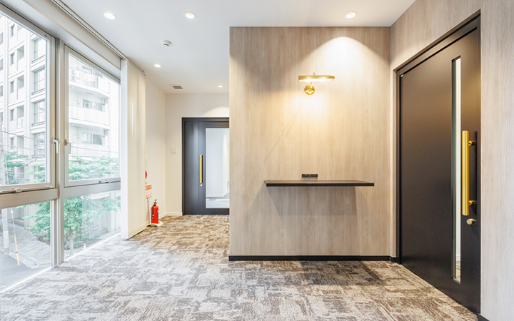 歴史を築いた街、『築地』。その名を一新する新たなイノベーションの発信地『TSUKIJI』 へ変貌いたします。建物エントランスは、天井高4,000mm超の大空間、モダンシックでエレガントな仕上げで、気持ち良くお客様をお出迎えいたします。貸室には会議什器も入れた会議室を2部屋設置。来社や社内打合せの多い企業様にもオススメです。また、建物屋上には専用テラスがございます。目下に広がった緑溢れるパークビューを独占できる他にはない癒しの空間です。自然と会話が生まれ、気持ちが高まり、創造力を解き放つ新たな『遊びの場』を提供いたします!!