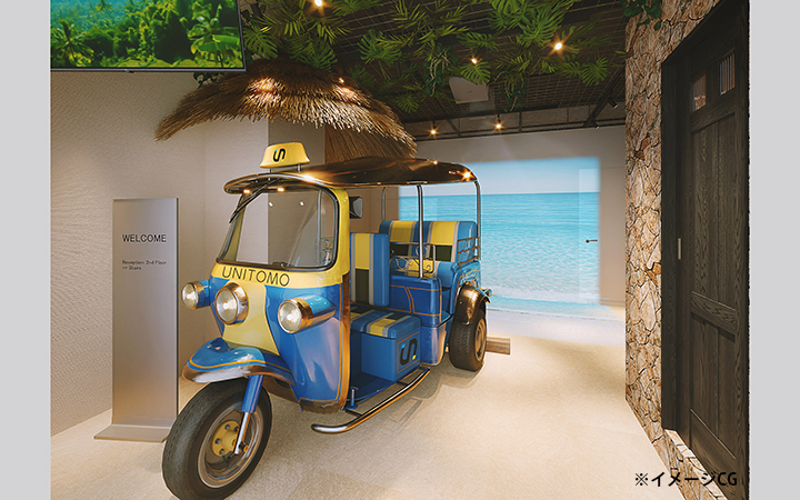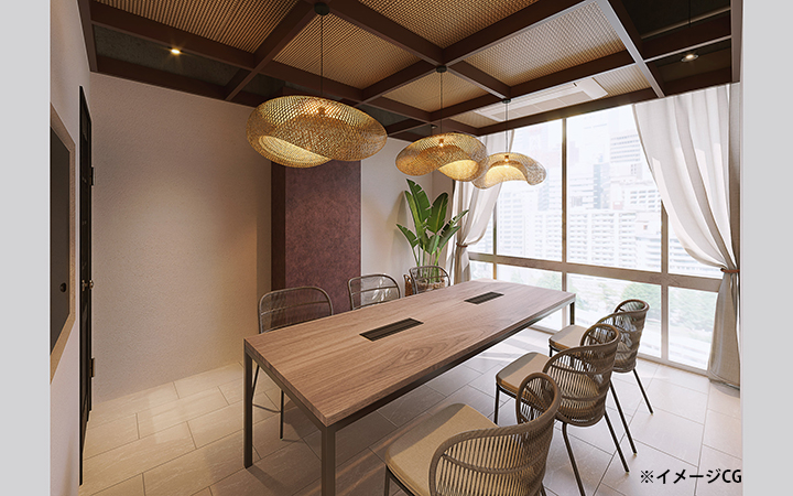 東京メトロ丸ノ内線【新宿御苑前駅】徒歩1分の立地にバリリゾートを感じるハーフセットアップオフィスが登場します!他のセットアップオフィスにはない特別な非日常の空間がお客様をお迎えします。ここで働く皆様が出社を楽しみになっていただけるような内装となっております。プロジェクションマッピングを採用しており唯一無二の空間でございます。入居者様にはトゥクトゥクをご利用いただけるサービスがございます!(※)是非一度お問合せください!