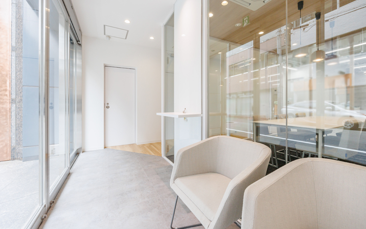 一際目に付く御影石張りの重厚感ある建物の1階をリニューアルしました(2018年1月工事完了)!新たに路面側貸室入口に自動扉を設置し、受け付けスペースを造作済み。開放感を演出する為に6名用会議室にはガラスパーテーションを採用し、抜け感を演出。執務室内は元々あった天井を解体しスケルトン天井にする事により天井高を確保し他物件にはない開放感を創出致しました。白を基調としたオフィススペースは清潔感があり、開放感を際立たせます。立地は昭和通りに面している角地に位置している為、視認性が高く、来客の多い企業様におススメです。お気軽にお問い合わせくださいませ。