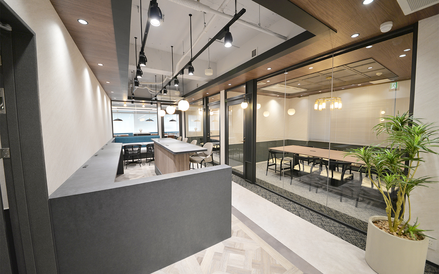 日本伝統色の墨色を基調としたセットアップオフィス(大型物件の分室区画)